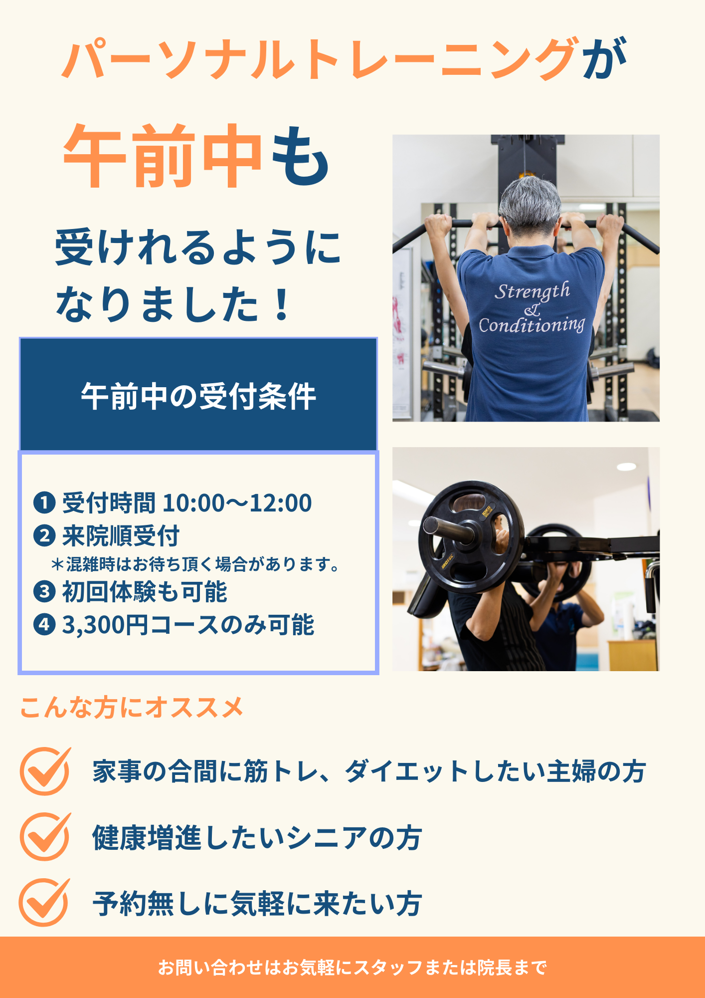 パーソナルトレーニングが午前中も受けられるようになりました!